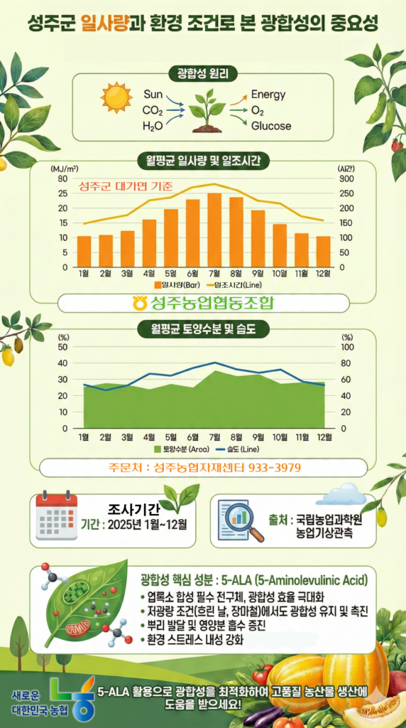 본 자료는 2025년1월~12월 국립농업과학원 자료에 근거하여 챠트로 만든 자료입니다. 광합성에 핵심요인이 되는 일사량은 2월평균 10전후 5월평균 20전후 입니다.